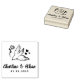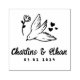 A charming personalised rubber stamp featuring a graceful dove carrying a flower with delicate heart details. Perfect for adding a romantic and meaningful touch to wedding invitations, envelopes, favours, thank-you cards, and more. Customise with your names and date to create a unique keepsake for your special day.