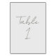 Custom wedding table numbers in a modern script. Great day of stationery in dark silver. Customise the card with your desired text and table number. Use the template to create your own custom wedding table number.