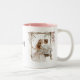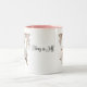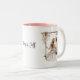 This custom name wedding coffee mug is shown with sample names and a bride and groom art print.