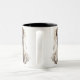 This custom name wedding coffee mug is shown with sample names and a bride and groom art print.