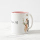 This custom name wedding coffee mug is shown with sample names and a bride and groom art print.