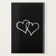 Custom weekly / monthly planner for wedding couple. Personalised weekly / monthly agenda book. Make your own cover design with interlocking hearts logo image. Romantic gift idea for newlyweds, bride and groom, engaged couple, husband and wife, newly weds, etc. Office presents for him or her. Love theme design with double heart icon. Upload your own image optionally. Elegant black and white chalkboard like design or custom colour background. Great for planning events in preparation of the wedding day. Stylish script typography template.