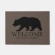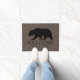 Custom welcome door mat with black bear logo design. Black and brown entry rug for front door with personalised family name. Elegant typography with modern animal silhouette. Available in small and large size. All customisable colours. Also great for cabin or camping. Stylish home decor accessories for new home, estate, country house, condo etc.