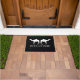 Custom welcome door mat with camel design. Black and white entry rug with personalised family name. Elegant typography with modern animal silhouette. Available in small and large size. Customisable colours.