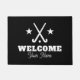 Custom welcome door mat with field hockey sticks