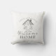 Looking for a unique gift for new homeowners? This customisable "Welcome Home" pillow is a perfect choice. The minimalist design features a charming house with rustic botanical elements, along with the choice to add an address or family name on the curved text on top. It's an ideal closing gift from a realtor or a special way to celebrate a housewarming. The grey design on a soft white cover offers a clean, modern aesthetic, though all colours are editable. © Kimbellished, LLC