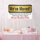 Let customers know your business location has moved or is moving with this large vinyl banner with yellow gold sign and custom printed details of your business.