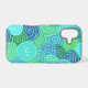 Design features a cute, whimsical rolling circles pattern in shades of blue and green. Personalise with name or custom text in white in a matching green shape with simple to use template.