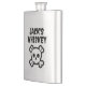 Custom whiskey flask with skull and bones symbol. Personalise with custom text. Skeleton symbol. Funny gift ideas for guys.