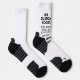 Custom Personalised ALL OVER PRINT High-Performance Women's Sports Socks - WHITE. Reinforced toe and heel. Polyester from recycled plastic bottles and printed with water based inks. 200 Needle Knit Polyester Socks: 58% Recycled Polyester, 22% Nylon, 15% Cotton, and 5% Elastane.