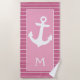 Custom White Boat Anchor Stripes On Bright Pink Beach Towel