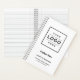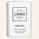 Add a professional look to your workspace with a custom company branded spiral notebook featuring a large space for your business logo with modern custom text that can be personalised with the name of the employee or business owner, business name, location, slogan, website, or other info. Makes a great corporate gift. Note, the white and black colour scheme can be modified.