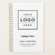 Add a professional look to your workspace with a custom company branded spiral business planner featuring a large space for your business logo with modern custom text that can be personalised with the name of the employee or business owner, business name, location, slogan, website, or other info. Makes a great corporate gift. Note, the white and black colour scheme can be modified.
