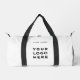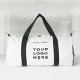 Custom Logo minimal white Name Company Promotional Instagram Fitness Duffle Bag featuring a simple and modern template with your business logo, photo or image and any personalised text. Perfect for fitness, yoga, workout, exercise. Add your name, website or social network address. No minimum order.
