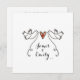 An illustration of 2 beautiful doves holding flowing ribbon with a love heart attached.