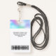 Easily personalise this Custom White Employee Name Badge with Photo, Scan Bar Code and business logo. A simple business design in iridescent holographic ombre colours and white colours fully customisable in front and back sizes, sans-serif basic and modern fonts and a professional and clear look. Avaiable with lanyard, metal clip or with retractable. No minimum order.