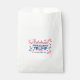 This Custom White Favour Bag is ideal for handing out goodies at a President Trump Inauguration party or event. Shows the words "Celebrate President Trump, January 20th, 2017" in red blue and white. Available in packs of 50 to cater for a mob !