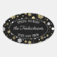Custom White Gold Snowflakes Polkadots On Black Oval Sticker