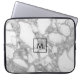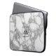 Custom white marble stone monogram laptop sleeve. Elegant design with personalised name initial letter. Chic Birthday gift idea for friends and family. Transferable print to other products on Zazzle. Luzury computer accessories for him or her.