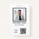 Custom simple white photo corporate employee qr code badge for business, organisation, medical centre, stores, nurses, manufactures, teachers, school, bank, all kind of corporations. Identify employee with identity card or badge and add name, company's name, logo, qr code. Personalise badges with employee photo , name, logo, qr code,custom text. Minimalist white qr code corporate employee staff badge