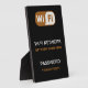 Display your WiFi details elegantly with our customisable 5" x 7" plaque. Made from durable hardboard with a UV resistant coating, this plaque features vibrant dye-sublimation printing and an easy-clean surface. Personalise with your own logos and text on a chic green background. Comes with an attached easel stand for effortless setup.