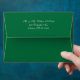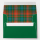 Colourful custom envelope done in green, with the colourful orange, green, and blue traditional Wilson clan tartan pattern, on the inside of the envelope. White script text return address, on the back flap, is ready to personalise. Perfect addition to our Wilson plaid wedding invitation set.