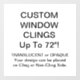 Custom Personalised Window Cling FULLY OPAQUE SHEET 4" x 4" SQUARE. Design is on Non-Cling side of the sheet, facing towards the person applying it to the window.