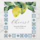 Bring a taste of the Amalfi Coast to your celebration with these watercolor lemon wine labels, featuring vibrant yellow lemons and a blue Amalfi tile pattern bottle label border. These custom labels are designed for easy editing—use the template fields to create DIY personalised wine bottle labels that reflect your event details and wedding style.