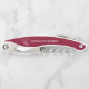 Customised corkscrew with illustration of grapes and vines on a red background, custom name of the winery, wine bar, restaurant or any other name.