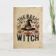 Send wickedly good wishes with this personalised Halloween witch greeting card, perfect for celebrating All Hallows' Eve in style! Featuring a playful "The Basic Witch" design, this card is a delightful mix of modern black and white typography and vintage Halloween charm. The artwork showcases a classic witch hat adorned with stars, surrounded by spooky pumpkins, jack-o'-lanterns, skulls, and whimsical bats. The grunge background adds a retro touch, making it ideal for fans of old-school Halloween aesthetics.