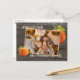 Unique, classy, trendy, pretty and decorative Thanksgiving holiday card. Cute WITH LOVE FROM text and room to customise or personalise with a photo and names (or family name) of your choice. With cute classic orange pumpkins on a weathered looking grey rustic farmhouse inspired barnwood planks pattern background design. And a customisable season greeting poem on the backside of the card.