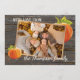Unique, classy, trendy, pretty and decorative Thanksgiving holiday card. Cute WITH LOVE FROM text and room to customise or personalise with a photo and names (or family name) of your choice. With cute classic orange pumpkins on a weathered looking grey rustic farmhouse inspired barnwood planks pattern background design. And a customisable season greeting poem on the backside of the card.
