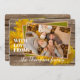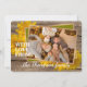 Unique, classy, trendy, pretty and decorative Thanksgiving holiday card. Cute WITH LOVE FROM text and room to customise or personalise with a photo and names (or family name) of your choice. With cute classic warm yellow fall Mums flowers pumpkins on a weathered looking grey rustic farmhouse inspired barnwood planks pattern background design. And a customisable season greeting poem on the backside of the card.