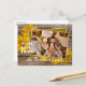 Unique, classy, trendy, pretty and decorative Thanksgiving holiday card. Cute WITH LOVE FROM text and room to customise or personalise with a photo and names (or family name) of your choice. With cute classic warm yellow fall Mums flowers pumpkins on a weathered looking grey rustic farmhouse inspired barnwood planks pattern background design. And a customisable season greeting poem on the backside of the card.
