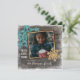 Unique, classy, trendy, pretty and decorative Holiday card. Cute WITH LOVE FROM text and room to customise or personalise with a photo and names (or family name) of your choice. With aqua turquoise blue green and gold coloured faux glitter snowflakes on a weathered looking grey rustic farmhouse inspired barnwood planks pattern background design. And a customisable season greeting poem on the backside of the card.