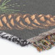 A quality printed throw has its advantages. This is a much finer weave throw than its loopier cousins, and though lighter, it is worth the investment for custom room accessorizing. The back is much prettier than the typical brown, and the fringe on the long sides very vivid, the selvage nicely done. Before photographing, I washed the throw in cold water, delicate, with a thicker woven throw the same size. On tumble dry low, this throw was dry in half the time as the other. This is a very practical quality if you use throws for furniture covers or to wrap up in frequently. The sleekness of the fabric makes it a great layer for accenting or protecting without the feeling of sitting on too much stuff. Perfect for napping or when you feel a light chill coming on. The color printing is beautiful and on this fabric, matched the design and color of my Photoshop image. This is an advantage for blending room fabrics and colors. The fringe on the short sides prints the colors from the design image and therefore varies from the side fringe. I streaked a white fractal line through the plaid pattern to give the illusion of weaving. This printed as crisp as an illusory thread, and put some white in the short side fringe, showing another advantage of print vs loomed- for artistic purposes, line lines, detail, and color integrity can be planned and preserved. My loomed throws have color limitations and more of a needlepoint texture. Print throws reproduce an exact image. The throw felt a little stiff straight out of the package, but this went away in the first delicate wash. Of course I searched the wash water for ink or bleeding and there was none.