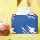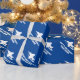 Custom wrapping paper with fighter jet plane print. Personalised gift wrap with aeroplane design. Cool Christmas Holiday or Birthday wrapping supplies for adults and kids. Add your own name or humourous quote. Blue or custom colours.