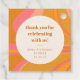 Express gratitude with these vibrant bridal shower favour tags, featuring a lively orange and pink swirl design that adds a touch of retro-inspired charm. Perfect for tying onto favours or gifts, these tags are ideal for brides celebrating with loved ones in a fun, colourful, and festive atmosphere. Customisable with the bride's name and date, they create a thoughtful keepsake for guests to cherish.