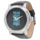 custom your text goes here, black with blue text watch