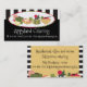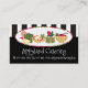 Shrimp cocktail, canape and appetizers, and black and white stripes on this custom background colour business card for personal chef, caterer or catering and other food, cooking, or culinary business.