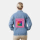 Customer Image Photo Logo Text Name Modern Elegant Pink Template Womens Blue Denim Jacket.