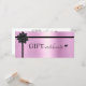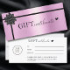 Make a lasting impression with this sleek and stylish gift certificate featuring a luxurious pink, complemented by a modern black ribbon and bow design. Perfect for various businesses, including beauty salons, spas, and personal care services, this certificate allows for easy customisation of essential details such as:
