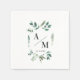 Minimal Leafy Monogram Watercolor Wedding Napkins – Custom Initials, Date & Location