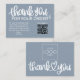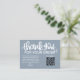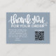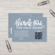 Express your gratitude with our dusty blue Customer Thank You Package Insert QR Code Coupon business card. This thoughtfully designed card features a QR code that leads your customers to an exclusive discount or special offer, showing appreciation for their loyalty. Make a lasting impression and strengthen your customer relationships with this personalised and stylish gesture.