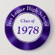 Purple and white Customisable 4 inch Class Reunion Buttons with Your Text. CALL Designer Linda at: 239-949-9090 to change the Purple and White Class Reunion Pins to Your School Colours.