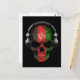 This unique design by artist Jeff Bartels features a dark Dj skull painted with the flag of Afghanistan. Metallic headphones sit on top of the old skull giving it the look of a music Dj. Large cracks snake across the bone which gives the skull an old and broken look. Make the design your own by changing the background to any colour you like. This stylish Dj skull design is a great way to show off your love of music and Afghan pride.