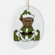 An African American baby dressed in a green elf suit on an ornament you can easily customise with your own text before ordering.