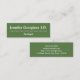 This minimal, customisable, and plain business card design features a green background, and a row of diamond shapes. It could be used by a professional such as a paralegal, lawyer, counsellor at law or barrister at law. The name, profession and contact details can be personalised.