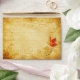 This autumn maple leaves A-7 invitation envelope has a matching 5"x7" wedding invitation available for purchase (see below). The return address on the back flap of the envelope is fully customisable. To change it, use the personalise option. For more extensive text changes, such as changes to the font, font colour, font size, and/or text layout, click on customise it. A fall maple leaves design in red, orange, yellow, tan, and brown situated on an aged parchment background. It would work well for an autumn wedding.