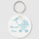 Celebrate your baby shower with this cute and customisable Mama Bird Baby Shower Party Favour Key Chain. The image features a mama bird feeding her baby bird in a baby carriage. This design features the text "Thank You" in teal lettering. Change the text to the words of your choice simply by clicking the customise button to the right of the picture.